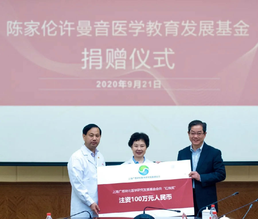 上海复星公益基金会向“陈家伦许曼音医学教育发展基金”捐赠100万元人民币