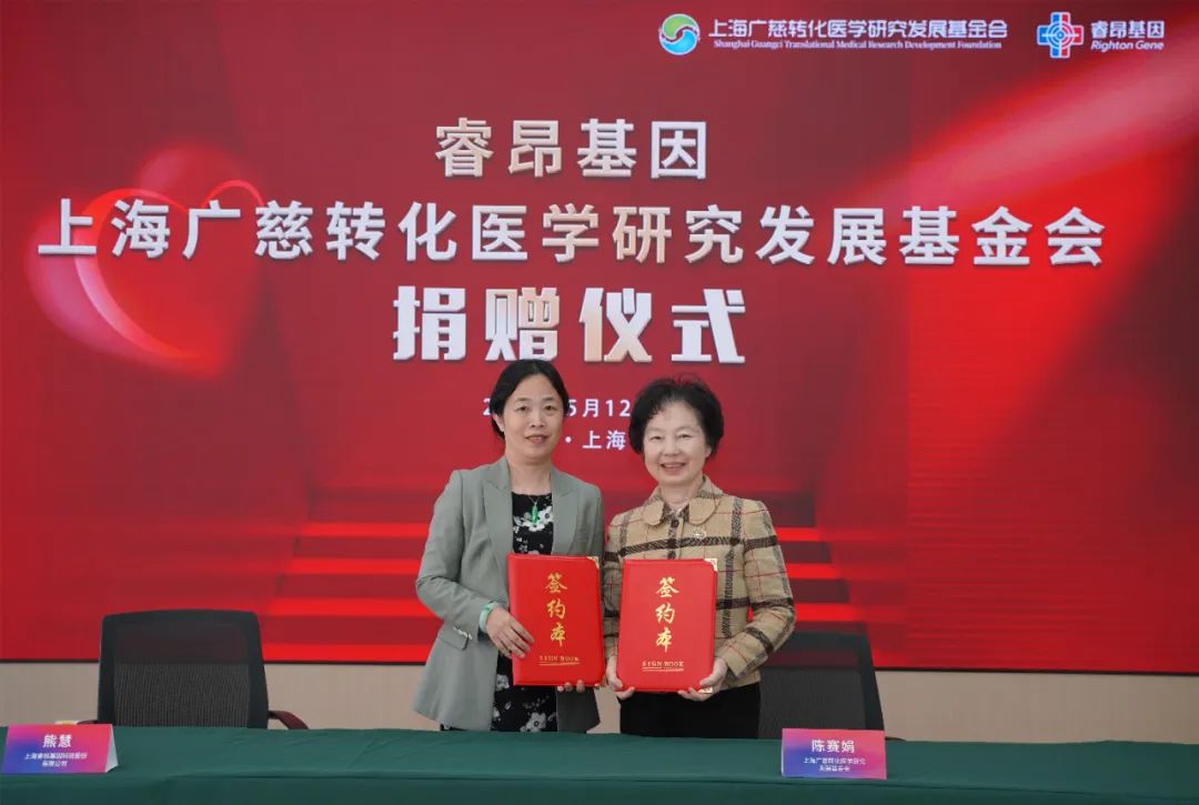 2023年5月12日下午,上海睿昂基因科技股份有限公司(以下简称“睿昂基因”)与上海广慈转化医学研究发展基金会(以下简称“广慈基金会”)的捐赠仪式在奉贤睿昂基因新大楼顺利举行!广慈基金会理事长陈赛娟院士、汪敏秘书长和闻朝君副秘书长,睿昂基因董事长熊慧出席仪式。
